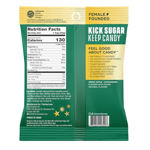 Details: We love candy too! But we don’t love all the sugar. SmartSweets is the first candy you can feel good about with up to 92% less sugar per 50g versus the leading traditional candy equivalents. Bursting with juicy flavours and better-for-you ingredients, SmartSweets makes the nostalgic flavours you know and love, without all the sugar.